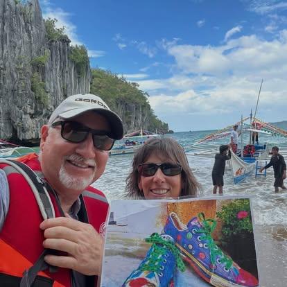 Part of her plan was to take her Converse tennies with her on her adventures. What we would like to do is ask you to print a picture of her tennies, take your tennies sweatshirt or t-shirt with you, or pull the picture up on your phone on any of your travels. If you would take a picture of yourself with the tennies shirt on, or holding the picture of her tennies, or the picture propped somewhere, and send it to us we will post it. We would like to see how far her tennies can travel.